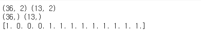 만든 배열의 처음 35개를 랜덤하게 훈련세트로 만들고, 그 이후의 것은 테스트세트로 만든다.
