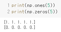 그 다음 타깃데이터를 만드는데, 앞에서처럼 [1], [0]을 곱하지 않고 쉽게 넣을 수 있다. ones() 함수와 zeros() 함수를 사용하면 원하는 개수의 1과 0을 채운 배열을 만들 수 있다.