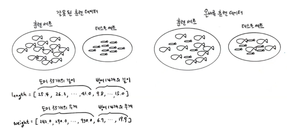 <사이킷런으로 훈련 세트와 테스트 세트 나누기>
