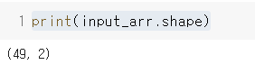 49개의 샘플과 2개의 특성이 있음을 알 수 있다.