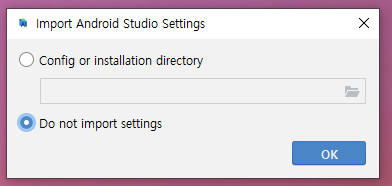 만약 아래와 같은 화면이 뜬다면, 이전에 설치한 이력이 있는 것이다. 그래서 이전의 설정을 가져올 것인지 묻는 것이다.만약 처음 설치하는 것이라고 하면, Do not import settings 그대로 둔 상태로 OK를 누른다.