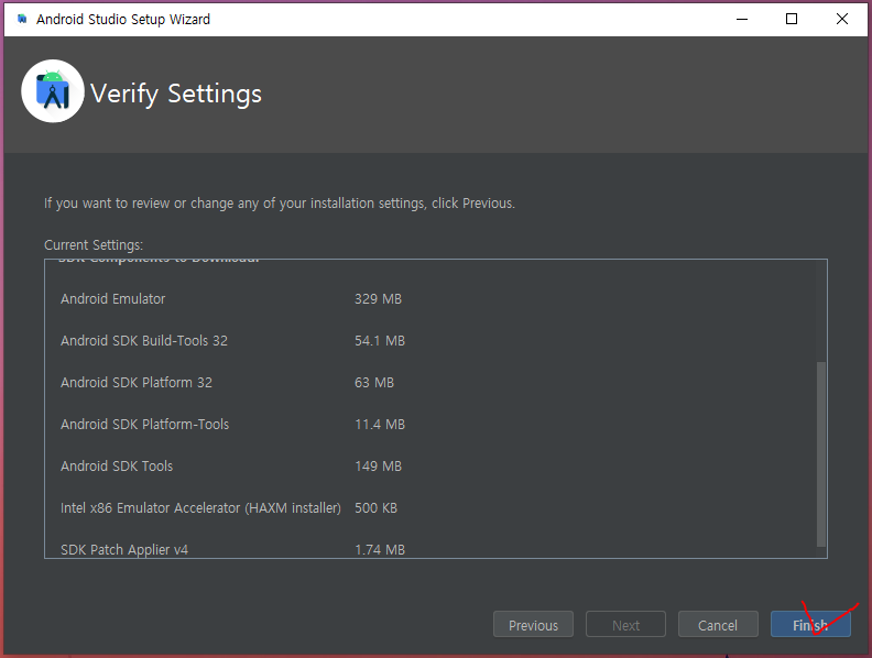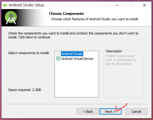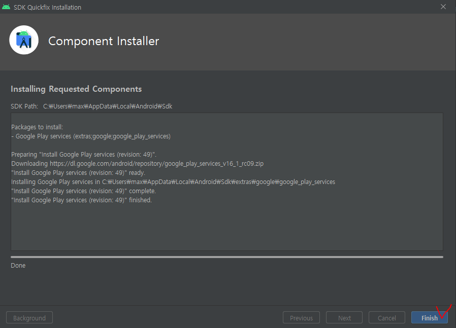 추가적으로 'Googld Play Services' 항목도 설치되어있지 않다면 추가로 체크하여 설치한다.
