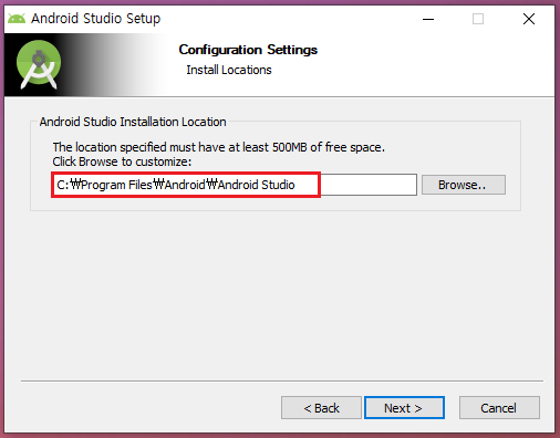 5) 원하는 경로로 설정을 해준다. 기본 경로가 괜찮다면 그대로 Next, 만약 원하는 경로가 따로 있다면 지정해준다.