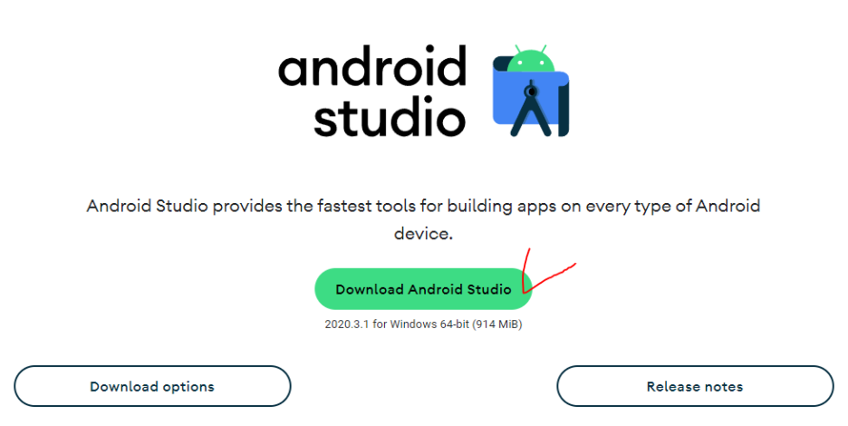 1) 웹사이트에 접속하여 최신 버전의 안드로이드 스튜디오를 설치한다.