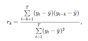 상관값이 두 변수 사이의 선형 관계의 크기를 측정하는 것처럼, 자기상관(autocorrelation)은 시계열의 시차 값(lagged value) 사이의 선형 관계를 측정한다.