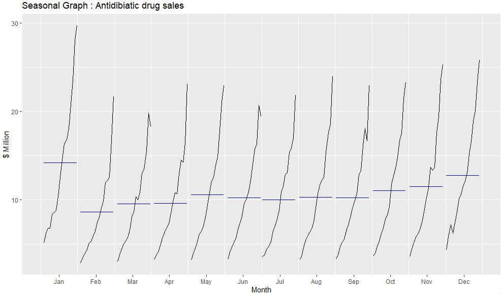 ggtitle("Seasonal Graph : Antidibiatic drug sales")
