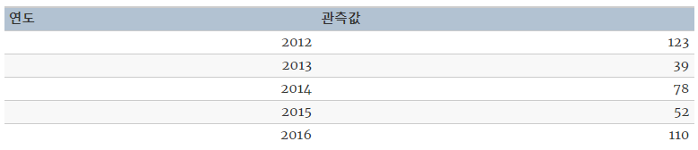 위와 같은 관측값의 데이터를 활용하여 예측할 때는, ts() 메서드를 활용하여 ts 객체로 바꿀 수 있다.