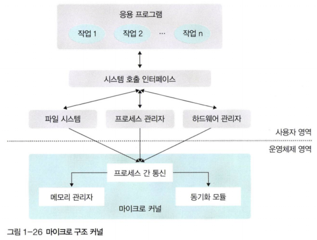 계층형 커널이 다양한 하드웨어와 사용자의 요구를 충족하기 위해 계속 커널과 기능을 추가하면서 크기가 커지고 하드웨어의 용량이 늘어남에 따라 오류도 잡기 어려워졌다. 이러한 접근 방식과 반대로 개발된 커널이 마이크로 구조(micro architecture) 커널이다.
